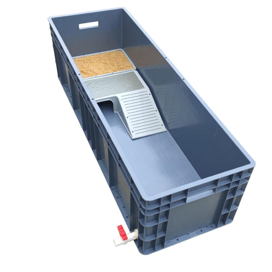 亀水槽 大きい ボックス カメ槽 亀飼育用プラスチック水槽 爬虫類繁殖ボックス カメ生息地 排水孔 階段 日向ぼっこ台 爬虫類ケース 観察 カメ用水槽 タートルタ