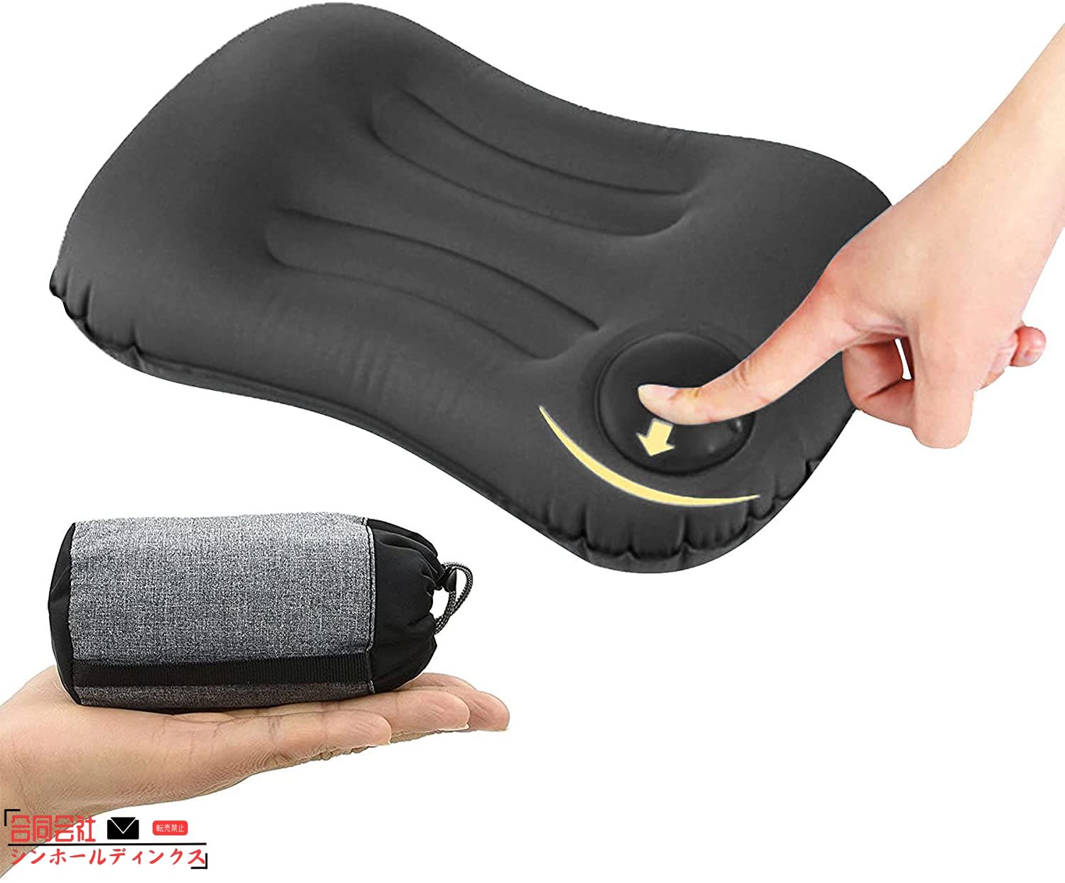 手動プレス式 エアーピロー エアー枕 人間工学設計 空気枕 腰枕 携帯枕 旅行枕 キャンプ枕 トラベルピロー ポンプ不要 超軽量 コンパクト