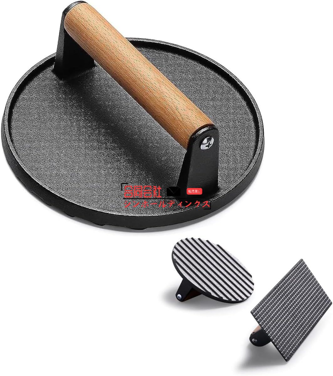 重し ミートプレス 鋳物 丸型鉄板ハンドプレス ハンバーガープレス ステンレス 鋳鉄ベーコンプレス 錆びない 大型 溝のデザイン で均一に加熱 バーベキュー プレ