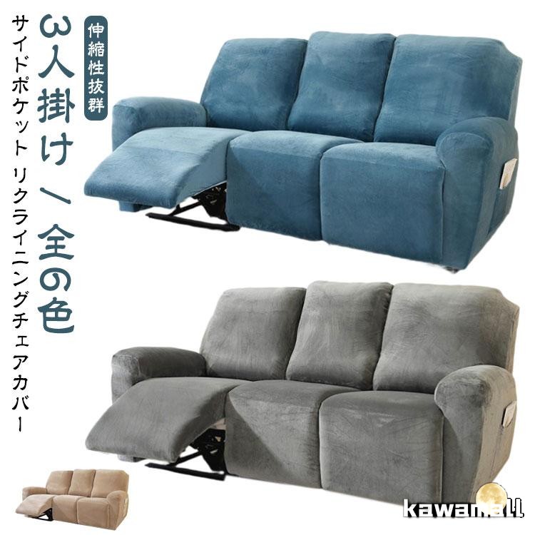 リクライニングソファーカバー 肘付き リクライニングチェアカバー チェアカバー サイドポケット 3人掛け 電動ソファーカバー ソファーカバー