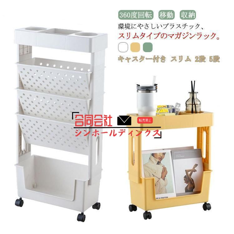 マガジンラック スリム おしゃれ ワゴン キャスター付き 2段 5段 斜め棚 カバン置き 収納 両面 本棚 A4対応 本立て ファイルラック ファイル