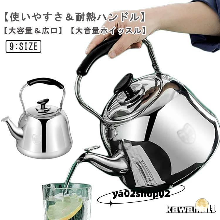 笛吹きケトル ステンレス 2L 3L 4L 5L 6L 7L 8L 9L 10L やかん 頑丈 防錆性 大容量 ガス火/IH対応 均一加熱 絶縁ハンド