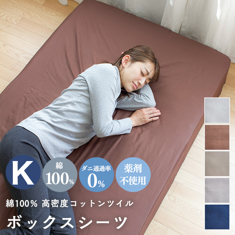 ボックスシーツ ベッドカバー ベッドシーツ キング 防ダニ 綿100% 180×200×25cm