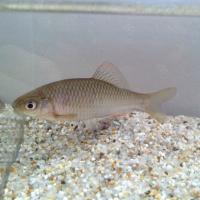 国内の分布域がとても広いタナゴで、槍のような体型が名前の由来になっているヤリタナゴです。口ひげが長く、成魚になると8〜10cmと大きくなります。春産卵型、オスの婚姻色はヒレが朱色(オレンジ色)に色づき、胸部はきれいな緑色になります。