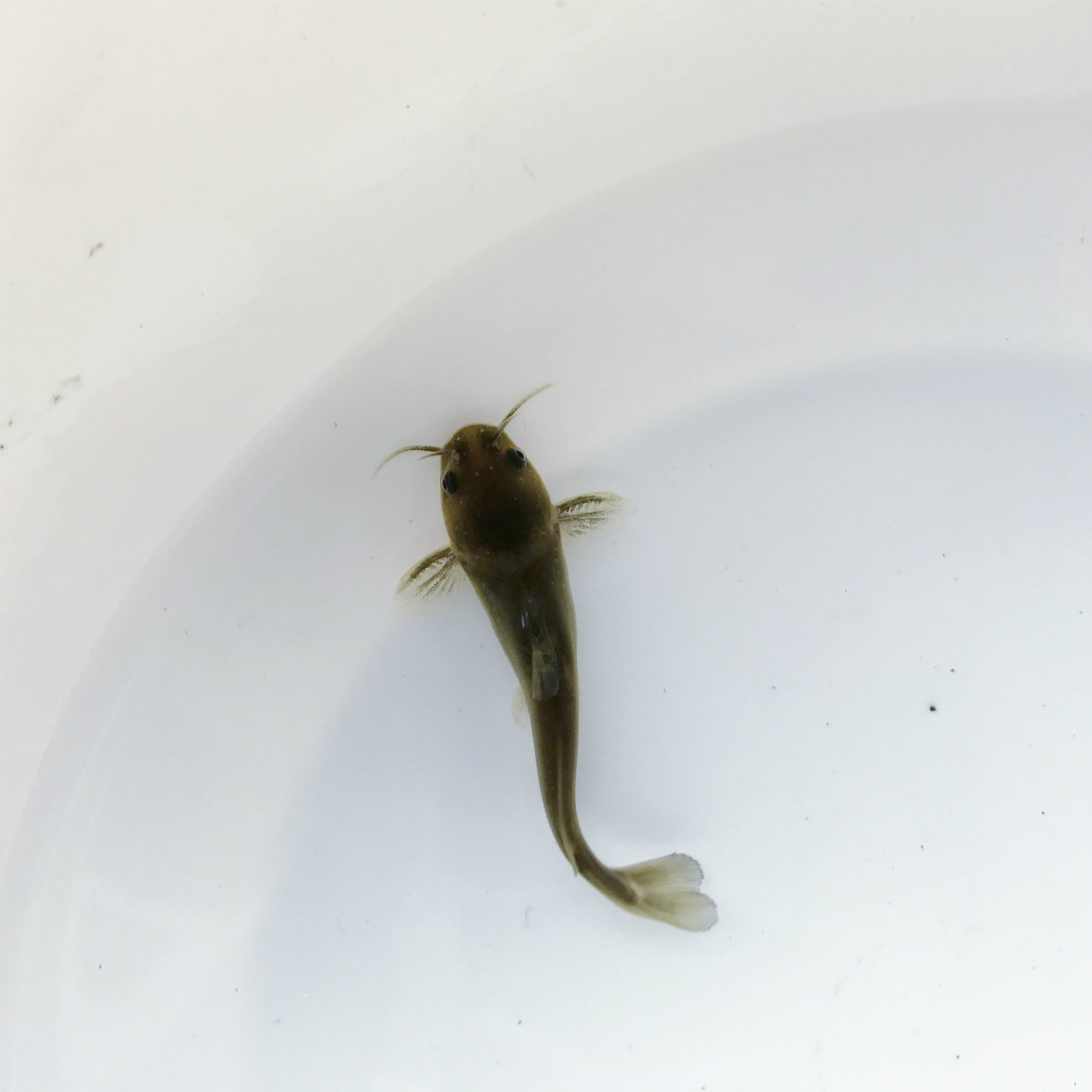ギバチは富山県、神奈川県以北の本州に分布しています。鱗がなくつるんとした体表で、胸鰭・背びれには棘があり、吻は全体的に丸みを帯びています。体色は、幼魚では透明感のある茶色に黄色のまだら模様が見られ、成魚では茶褐色、黒褐色と、成長とともに変化します。上流部の小川に生息していることが多く、年間を通して比較的低い水温で生活しています。また、ヒガシシマドジョウやアブラハヤ、ジュズカケハゼが同所で見られることがあります。自然界ではエビや小型の魚、水生昆虫などを食べています。