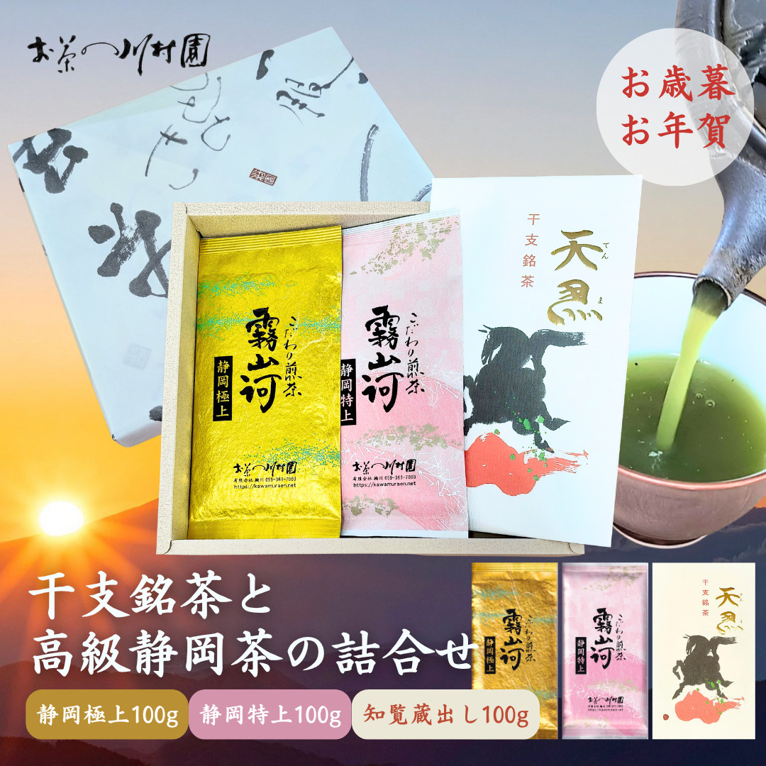 お年賀 お茶 ギフト 静岡 老舗日本茶専門店の高級静岡茶と干支銘茶詰合せ 深蒸し茶 100g×3袋 年末年始限定 お歳暮 内祝 各種のし対応