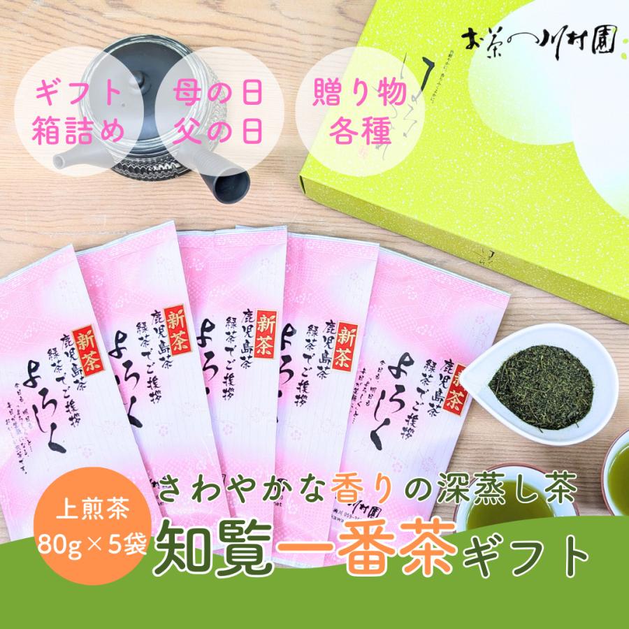 お年賀 お茶 ギフト 知覧茶 上煎茶「よろしく」80g×5袋 鹿児島茶 お茶の葉 深蒸し茶 寒中見舞 御祝 内祝 快気祝 各種のし対応