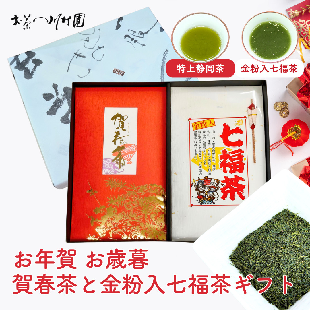年末年始限定の静岡茶「賀春茶」と縁起の良い緑茶「金粉入り七福茶」の詰合せ