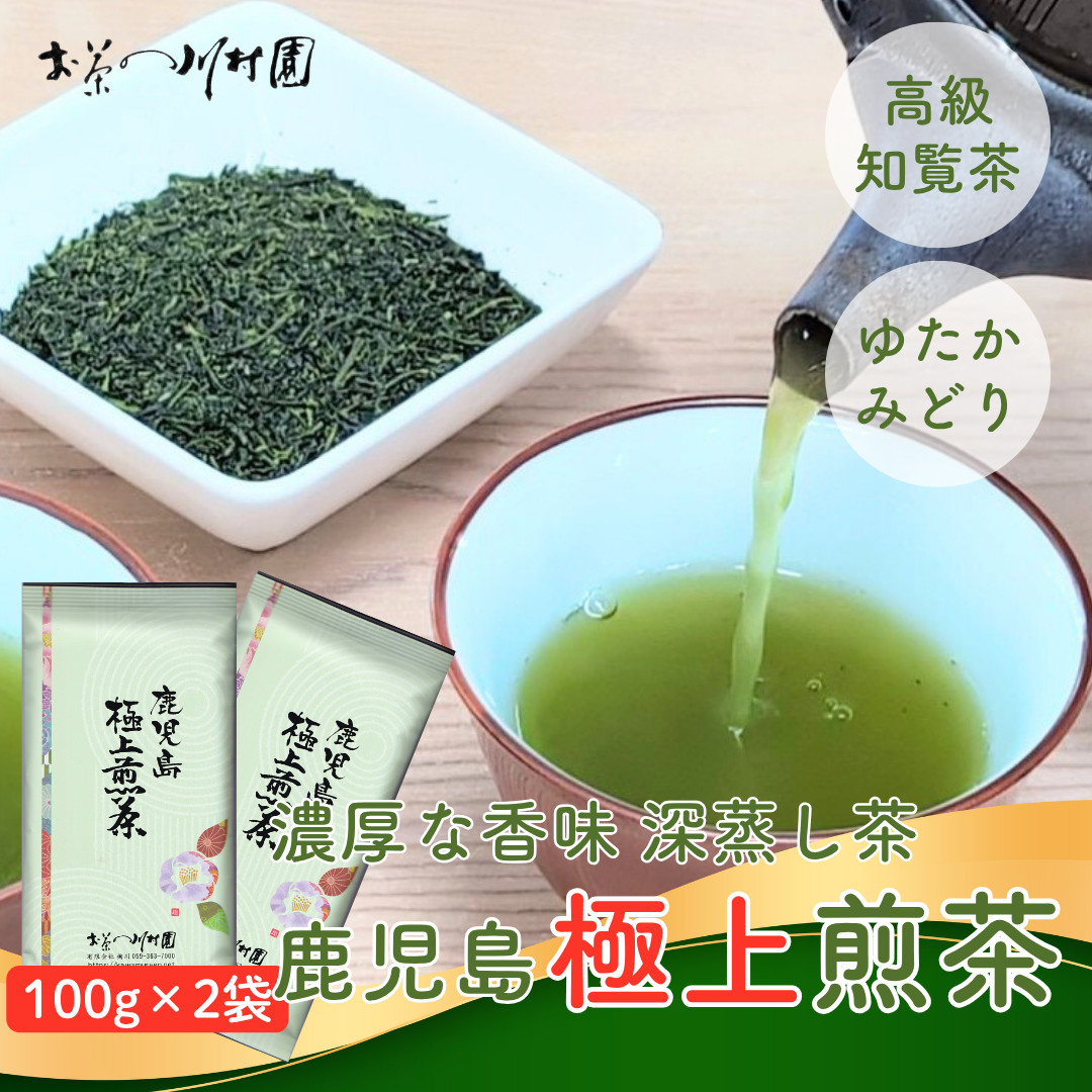 お茶 お茶の葉 知覧茶 深蒸し茶 鹿児島極上煎茶 100g×2袋 メール便配送セット ゆかたみどり 緑茶 高級 日本茶