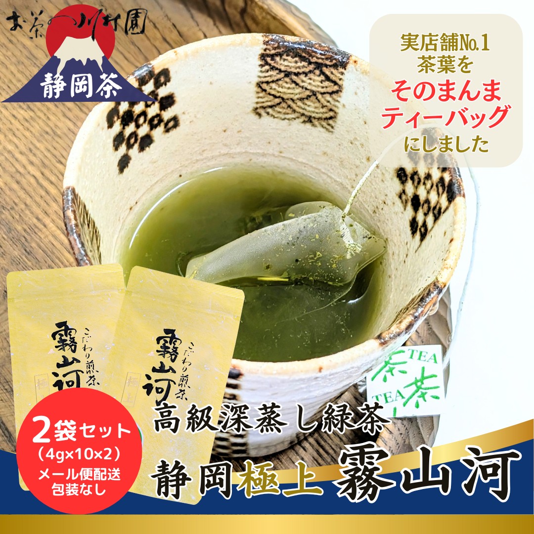 お茶 緑茶 ティーバッグ 静岡茶 高級茶 深蒸し茶「霧山河・極上」2袋メール便配送セット(4g×10×2) 日本茶 ティーパック 包装不可
