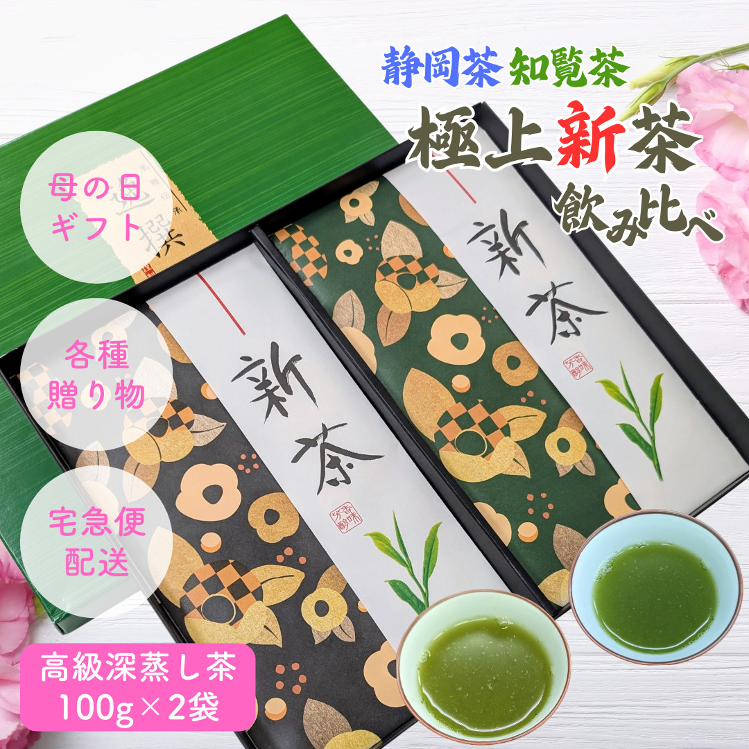 母の日 お茶 ギフト 2026年産新茶 飲み比べ 静岡 知覧 極上新茶100g×2品種 詰合せ 静岡茶 知覧茶 深蒸し茶 高級茶 内祝 志 各種のし対応