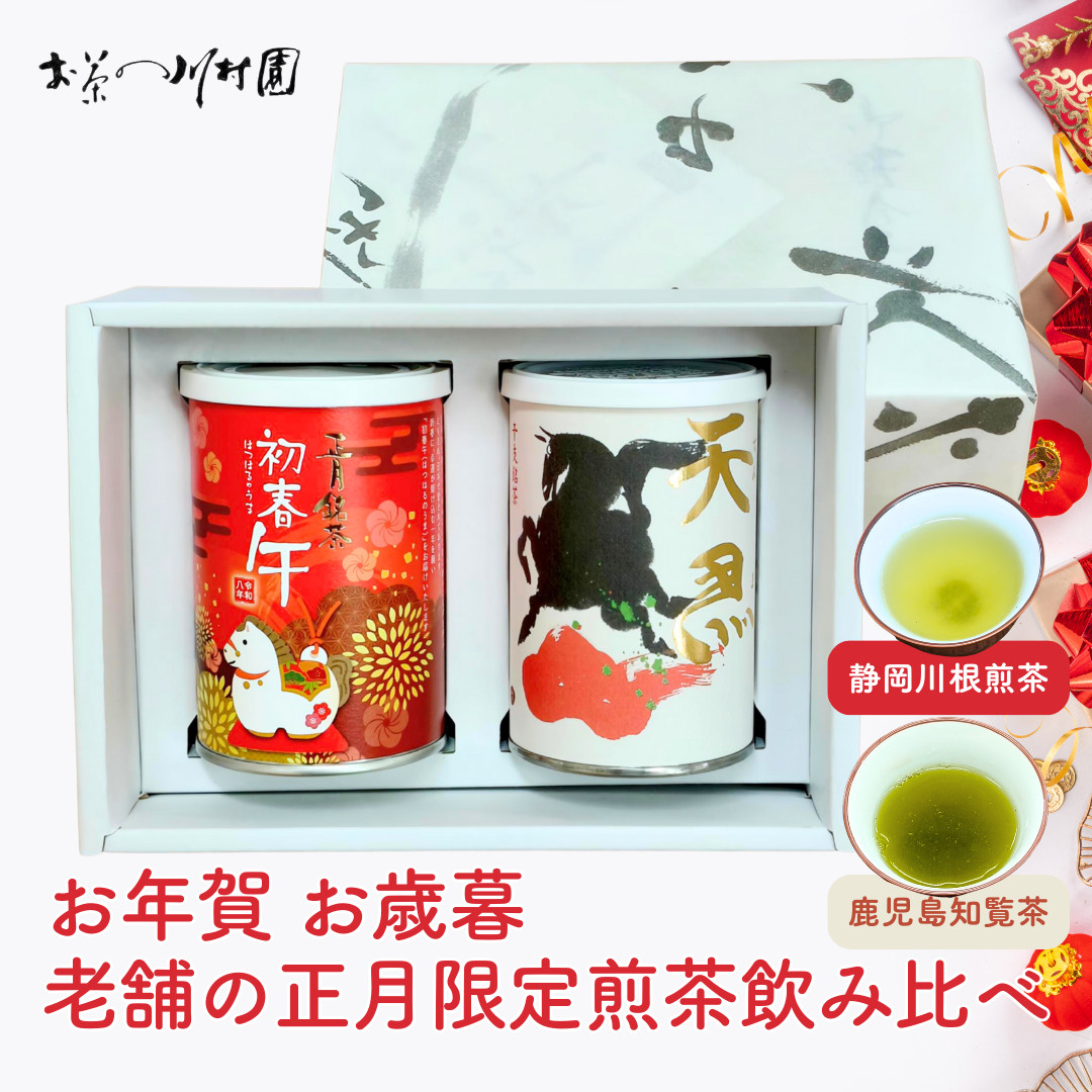お年賀 お茶 干支 ギフト 老舗の正月限定煎茶飲み比べ 静岡川根茶 鹿児島知覧茶 高級茶 お茶の葉 各種のし対応