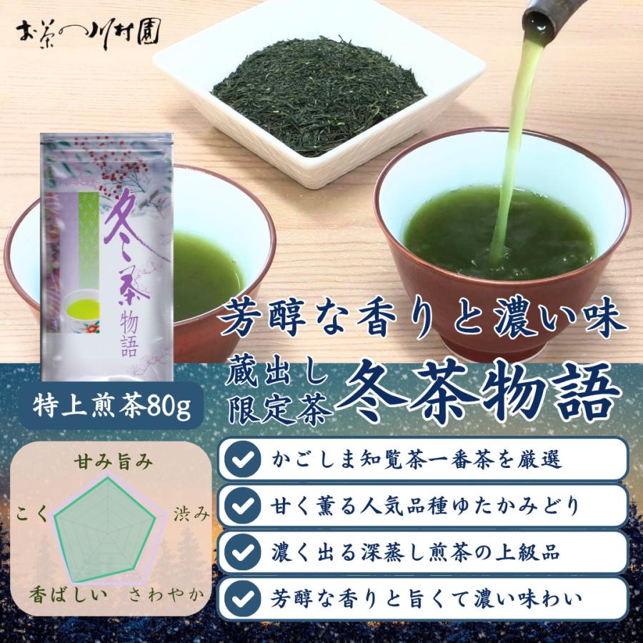 1.蔵出し限定茶「春茶物語80g」または「冬茶物語80g」いずれか1袋