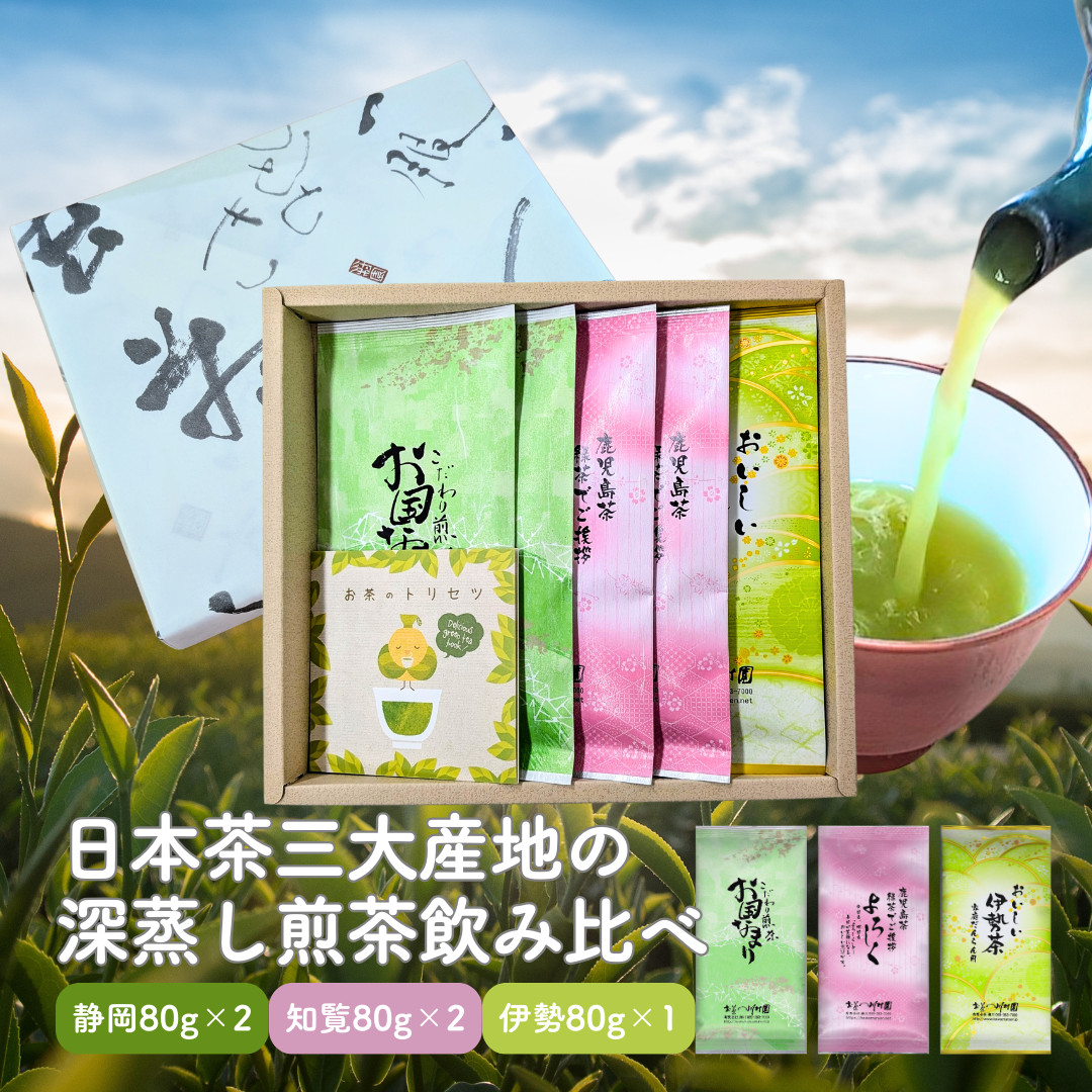 お茶 ギフト 飲み比べ 老舗日本茶専門店の深蒸し煎茶5袋詰合せ 静岡茶 伊勢茶 知覧茶 お茶の葉 お年賀 寒中見舞 内祝 快気祝 香典返し 各種のし対応