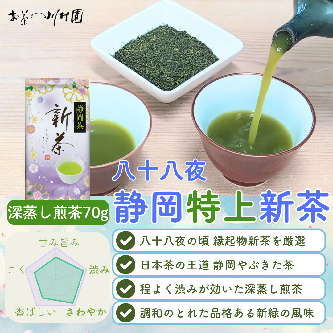新茶 予約 2026 静岡茶 深蒸し煎茶 八十八夜 特上静岡新茶 70g 新茶限定品 やぶきた品種 高級茶 お茶の葉 茶葉