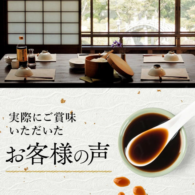 | 原材料 | しょうゆ(脱脂加工大豆、小麦、食塩)(国内製造)、醸造調味料、食塩、ぶどう糖、砂糖、昆布エキス、鰹節、鰹エキス、昆布、醸造酢/調味料(アミノ酸等)、アルコール、カラメル色素、ビタミンB1 |
