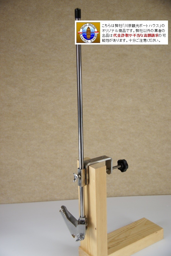 クランプは腐食に強いステンレス製。有効取り付け幅は74ミリです。軽い締め付けでもエンジン脇のトランサムボードにシッカリ固定できます。最新版ではクランプ板厚が6ミリになり更に強力になりました。