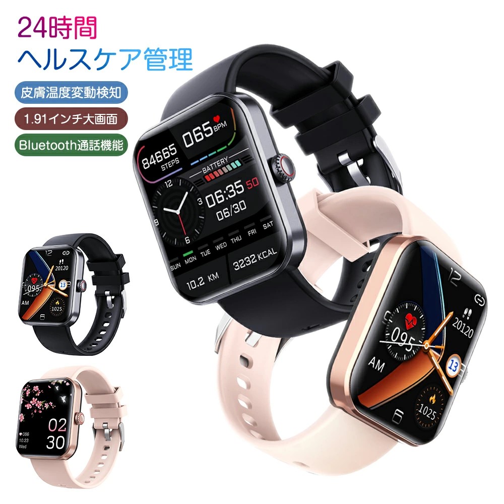 | 多機能スマートウォッチ 1.9インチの大字幕高精細なカラースクリーンで、日付表示、歩数、睡眠検測など毎日活動を正確に記録します。 心拍数、活動量、歩数記録、睡眠記録、天気報告、SMS通知、電話の着信通知、アラーム、データ同期、データ分析。時計機能はもちろん、iPhoneやAndroidなどのスマホとBluetoothで接続することで、走行距離、カロリー消費、睡眠モニター など日々の様々な活動量の計測が可能です。 大画面・長時間待機 1.9インチのカラースクリーン、280 * 340解像度のディスプレイを搭載し、文字がもっと明らかになり、強い日差し下にも見やいです。 200mAh大容量バッテリーを搭載され、約2時間のフルー充電で7日間も持ちます。(使用頻度によりバッテリーの消耗が早くなく場合があります) 着信通知/アプリ通知 着信通知やメール通知だけでなく、LINE,Twitter,Instagram、Facebook、Whatsapp等アプリからのメッセージを受信し、ディスプレイに表示します。 会議中や電車中でもメッセージを見逃しません。ディスプレイをタップしてスマートウォッチから拒否することもできます。 安心の日常生活防水 IP67ハイレベルの防水防塵テザイン、日常の手洗いなどの際は取り外す必要はなく、雨が降っていても安心です。 ※完全防水ではない為、お風呂など水に浸ける行為はお控えください。 ※本製品は運動におけるトレーニングの効果・効率の向上や運動強度の管理を主たる目的としております。医療目的でのご使用はできません。 | |