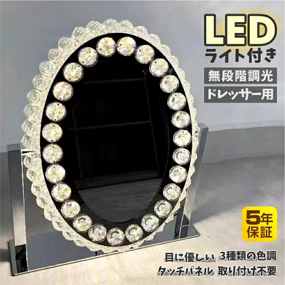 人気商品★女優ミラー ledライト付き 卓上ミラー 化粧鏡 三段階調色 調光 卓上 タッチスイッチ 記憶機能 高輝度 省エネ ドレッサー用 化粧台 楕円形 自撮り 照明
