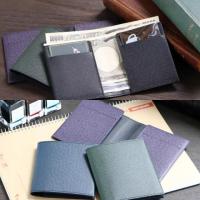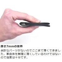 前作にはなかった待望のカード段が付いた超薄の札ばさみ。革は横に長い1枚物を使用。余計なパーツがないので、厚さ7mmという薄さを実現できました。札入れは1万円札がピッタリ入る大きさになっています。カード段を縦にすることで、スーツの胸ポケットにも入れられるコンパクトサイズに仕上げることができました。内側には合皮を使用し、見た目にも楽しめるようにカラーリングをコンビカラーにしています。携帯性抜群の薄くて軽い札ばさみです。