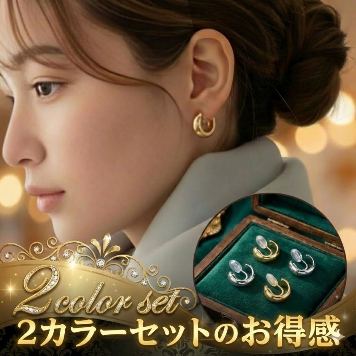 贅沢な「2カラーセット」:金・銀の両方が届き、その日の服に合わせて選べます。
