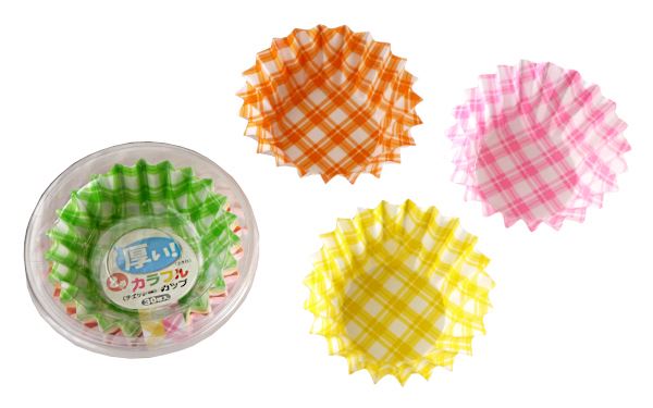 おかずカップ 厚いカラフルカップ チェック柄 8号(底径4×高さ3cm) 30枚入 (100円ショップ 100円均一 100均一 100均)