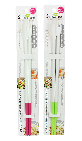 菜箸 シリコン製 計量スプーン&フォーク付 30cm シリコンクック [色指定不可] (100円ショップ 100円均一 100均一 100均)