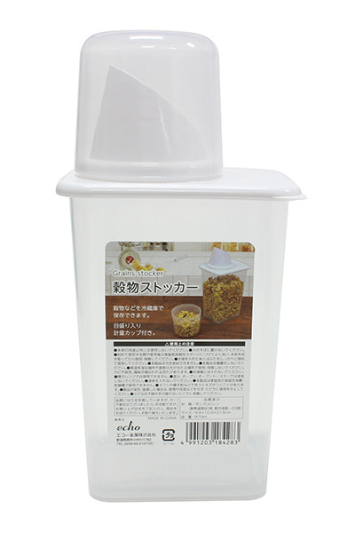 穀物ストッカー 計量カップ付 8.8×10.9×高さ21.6cm (100円ショップ 100円均一 100均一 100均)