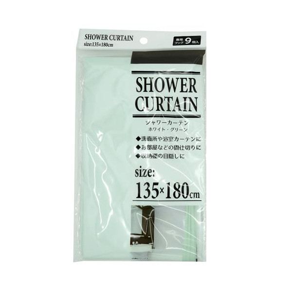 シャワーカーテン ホワイト・グリーン 135×180cm [色指定不可] (100円ショップ 100円均一 100均一 100均)