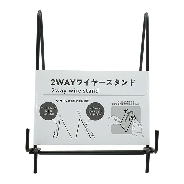 受けパーツを動かすことで2パターンの角度で使えるワイヤースタンドです。