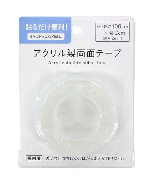 アクリル製両面テープ 幅2×長さ100cm (100円ショップ 100円均一 100均一 100均)