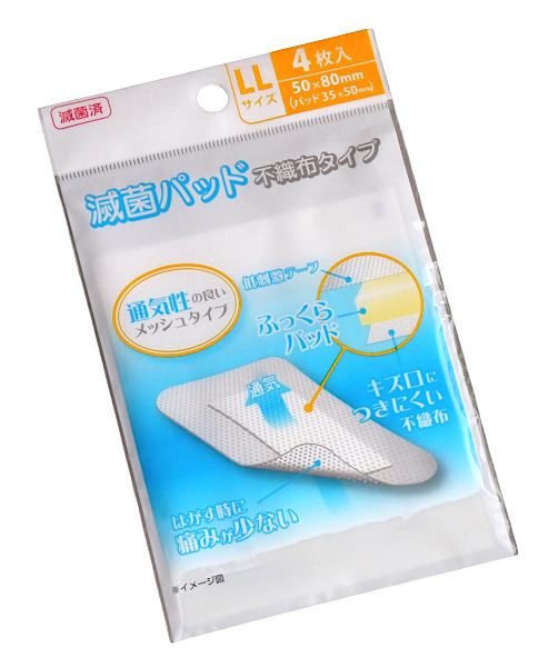 滅菌パッド 不織布タイプ LLサイズ(5×8cm) 4枚入 (100円ショップ 100円均一 100均一 100均)
