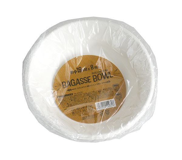 バガスボウル 浅型 直径19cm 8枚入 (100円ショップ 100円均一 100均一 100均)