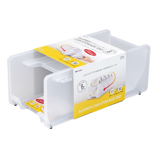よく飲む缶ドリンクを先入れ先出し収納できます。