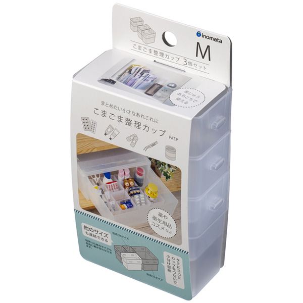 こまごま整理カップ クリアー M(4.4×8.5×高さ7cm) 3個入 (100円ショップ 100円均一 100均一 100均)