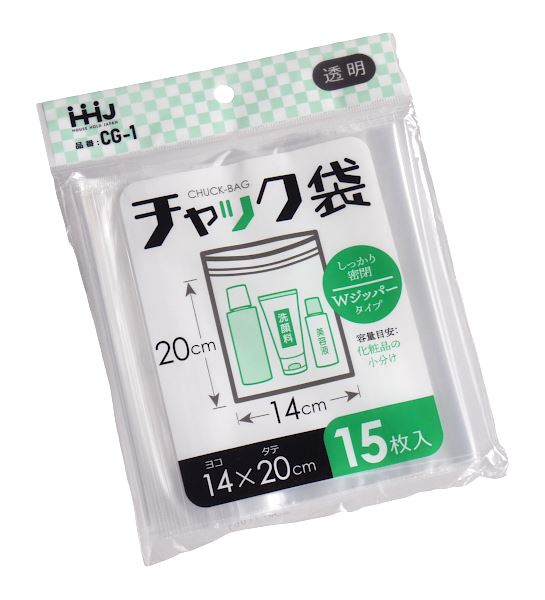チャック袋 Wジッパータイプ 14×20cm 15枚入 (100円ショップ 100円均一 100均一 100均)