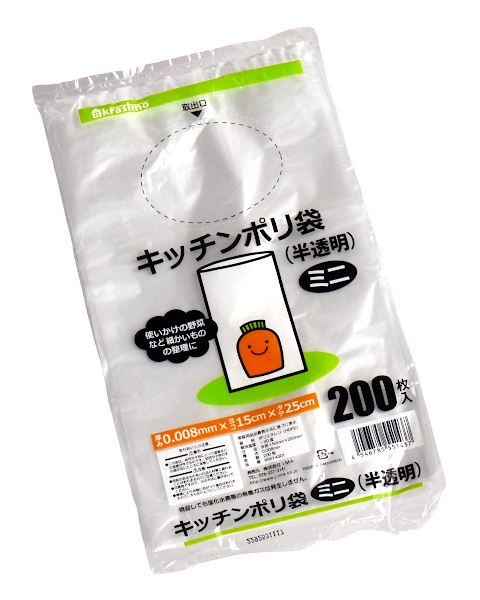 キッチンポリ袋 半透明 ミニサイズ(15×25cm) 200枚入 (100円ショップ 100円均一 100均一 100均)