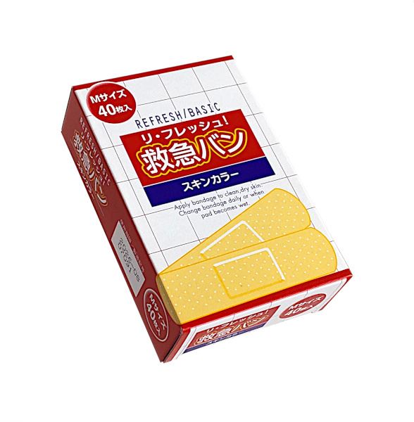 絆創膏 リフレッシュ救急バン Mサイズ(1.9×7.2cm) 40枚入 (100円ショップ 100円均一 100均一 100均)