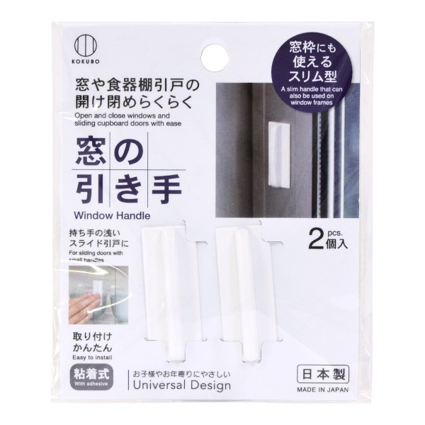 窓の引手 粘着式 ホワイト 5×2×奥行1.2cm 2個入 (100円ショップ 100円均一 100均一 100均)