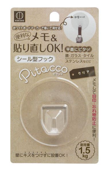 シール型フック Pitacco クリア 直径7cm (100円ショップ 100円均一 100均一 100均)