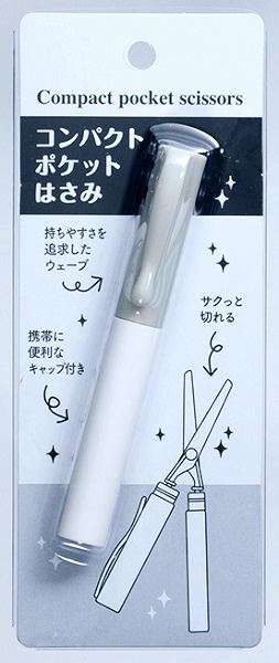 携帯に便利なキャップ付きのコンパクトはさみです。