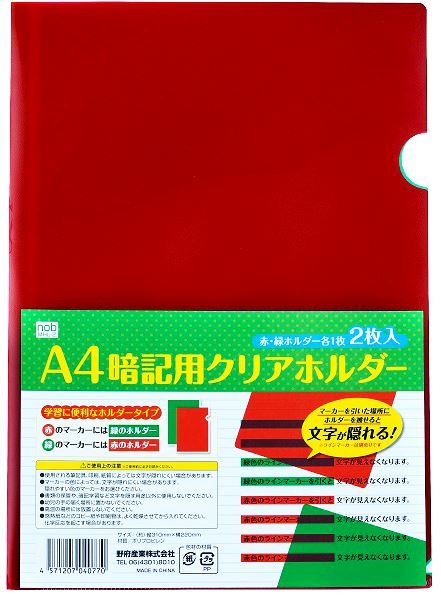 ●品名・nob A4暗記用クリアホルダー2P