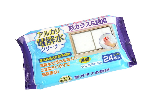 アルカリ電解水クリーナー 窓ガラス&鏡用 除菌 20×30cm 24枚入 (100円ショップ 100円均一 100均一 100均)