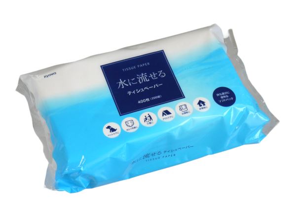 水に流せるティッシュペーパー、400枚(200枚)入りです。