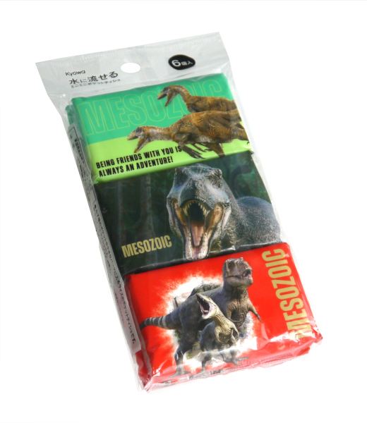 水に流せるミニミニポケットティシュ メソゾイックダイナソー 16枚(8組)×6個入 (100円ショップ 100円均一 100均一 100均)