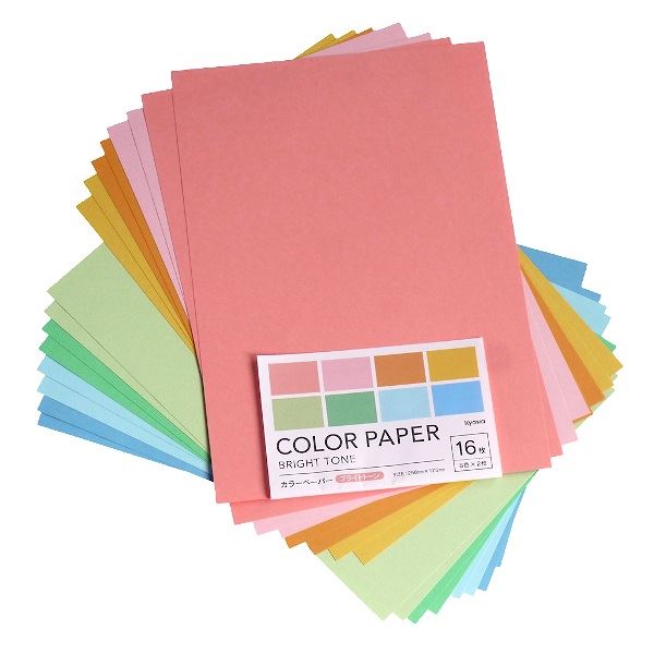 カラーペーパー ブライトトーン 25×17.5cm 16枚入 (100円ショップ 100円均一 100均一 100均)