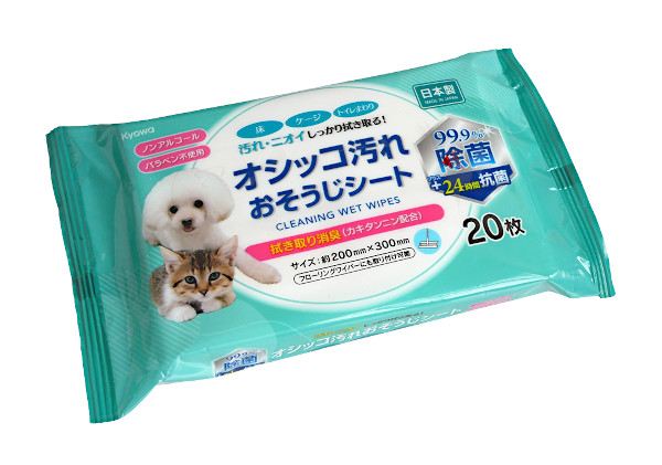 ペットのオシッコ汚れお掃除ウェットシート 20枚入 (100円ショップ 100円均一 100均一 100均)