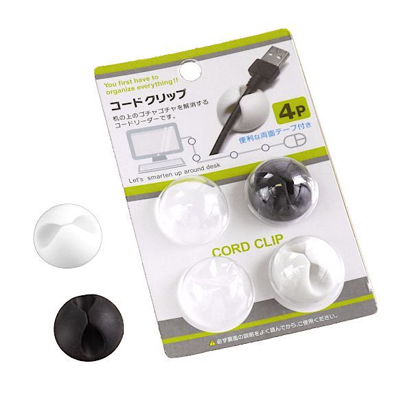 コードクリップ 直径2.8cm 4個入 (100円ショップ 100円均一 100均一 100均)