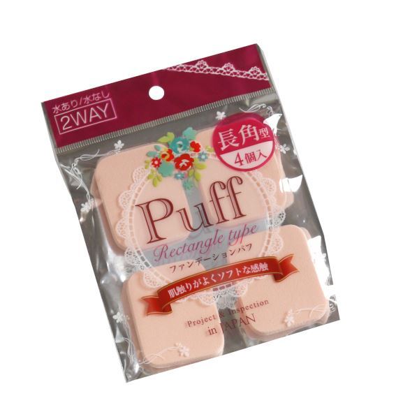 ファンデーションパフ 長角型 2WAY 5.4×4.2cm 4個入 (100円ショップ 100円均一 100均一 100均)