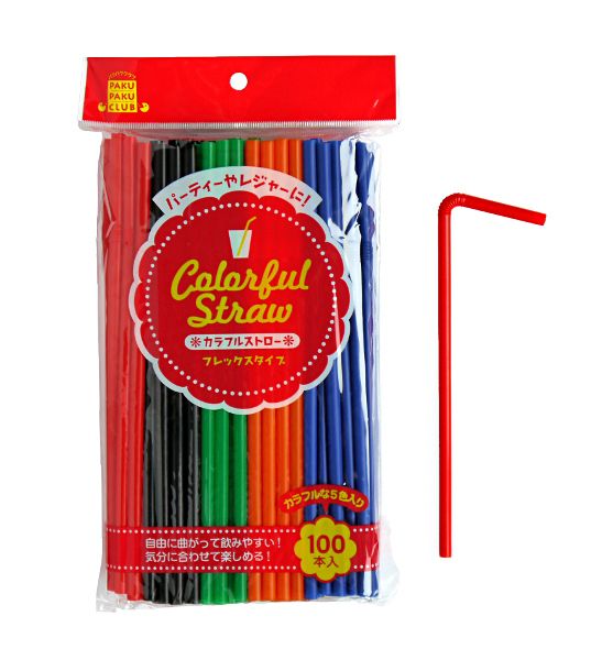 ストロー 曲がるタイプ カラフル 100本入 (100円ショップ 100円均一 100均一 100均)
